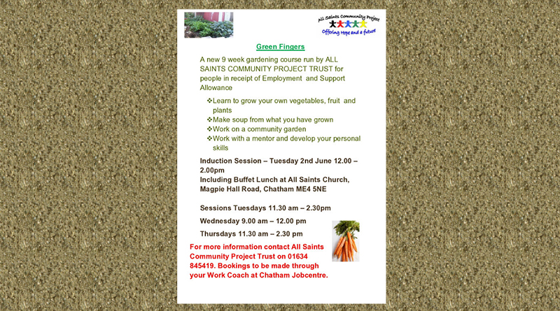 Free 9 week gardening course at All Saints for people in receipt of Employment and Support Allowance.